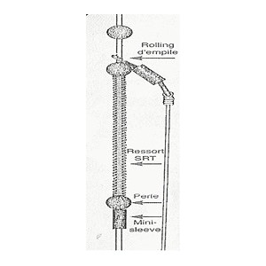 Est surtout utilisé comme une protection contre les décrochages intempestifs dus à l’étirement du nylon lors des lancers. Pour éviter ce petit problème, il suffit, comme le schéma le montre, d’insérer un ressort SRT sur le corps de ligne et quelle que soit la tension, l’hameçon restera bien fixé.