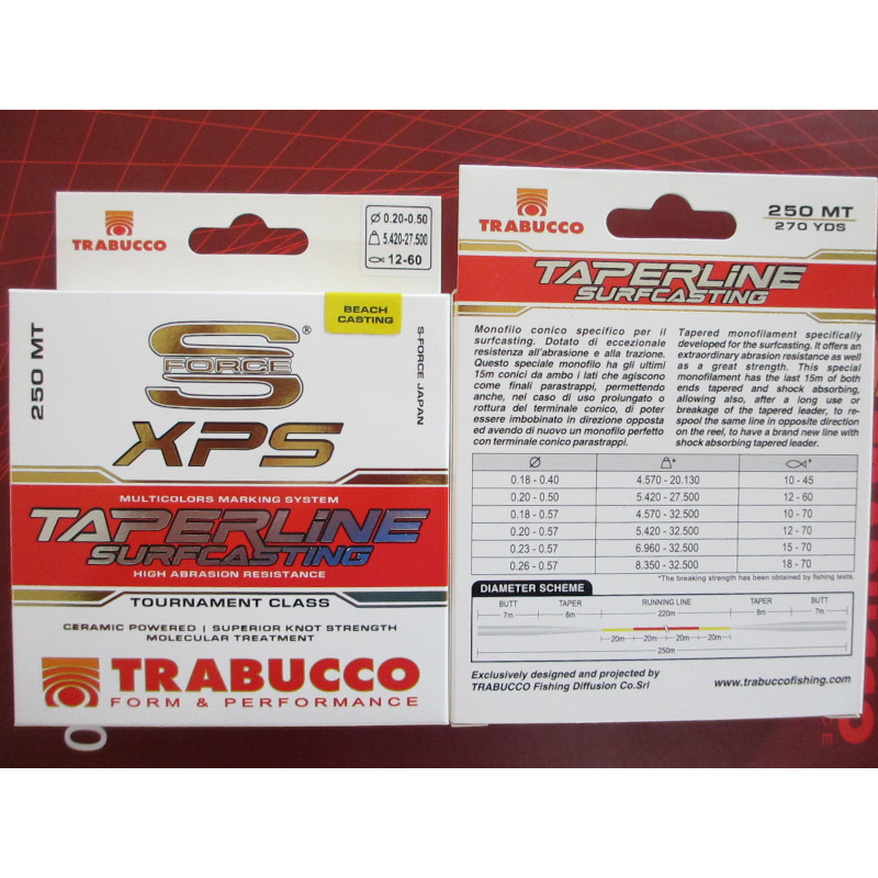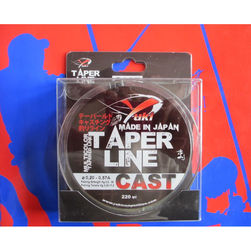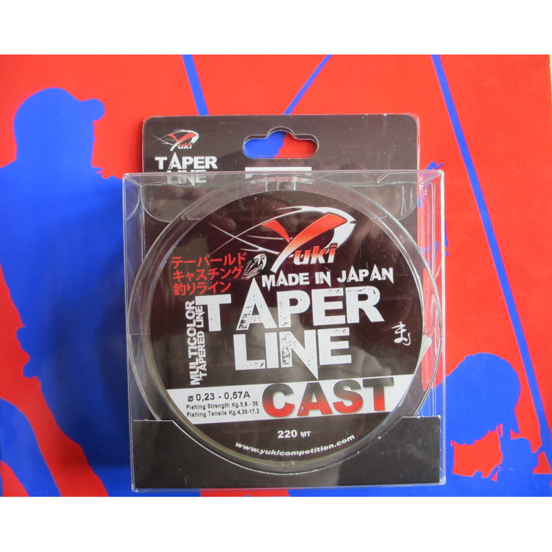 Le fil Taperline est un fil progressif avec un nylon de couleurs différentes pour pouvoir repérer les distances des lancers. Exclusivement conçue pour mer encombrée d’algues, cette ligne de surf est vendue en bobines de 220 ou 250 mètres avec les 20 dernier mètres en queue de rat.