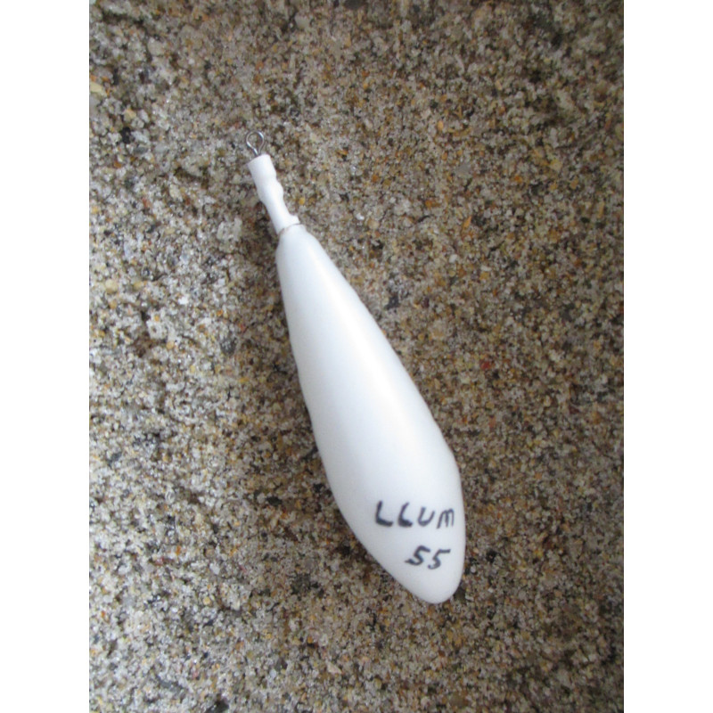 Plomb beach ledgering 55g plastifié blanc avec rolling et tétine blanche thermoformé.