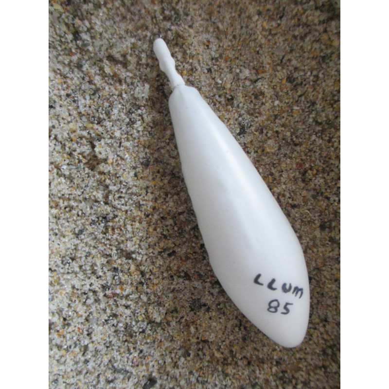 Plomb beach ledgering 85g plastifié blanc avec rolling et tétine blanche thermoformé.