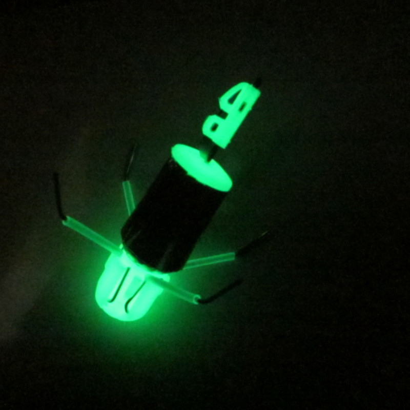 Phosphorescent capsule; tête grappin, gaine sur tiges grappin ; système de fixation hameçon